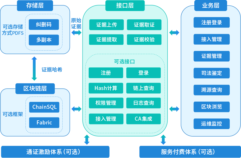 支持ChainSQL和Fabric區塊鏈技術底層。支持國密算法,ChainSQL已獲得商用密碼產品型號證書。